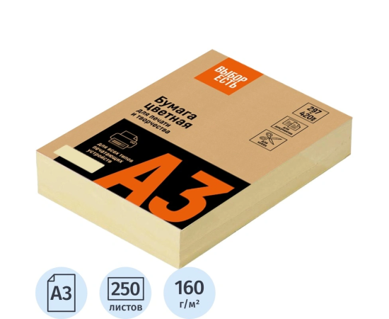 Бумага цветная Выбор есть (А3,160г, желтая пастель) 250л/уп, 1623190