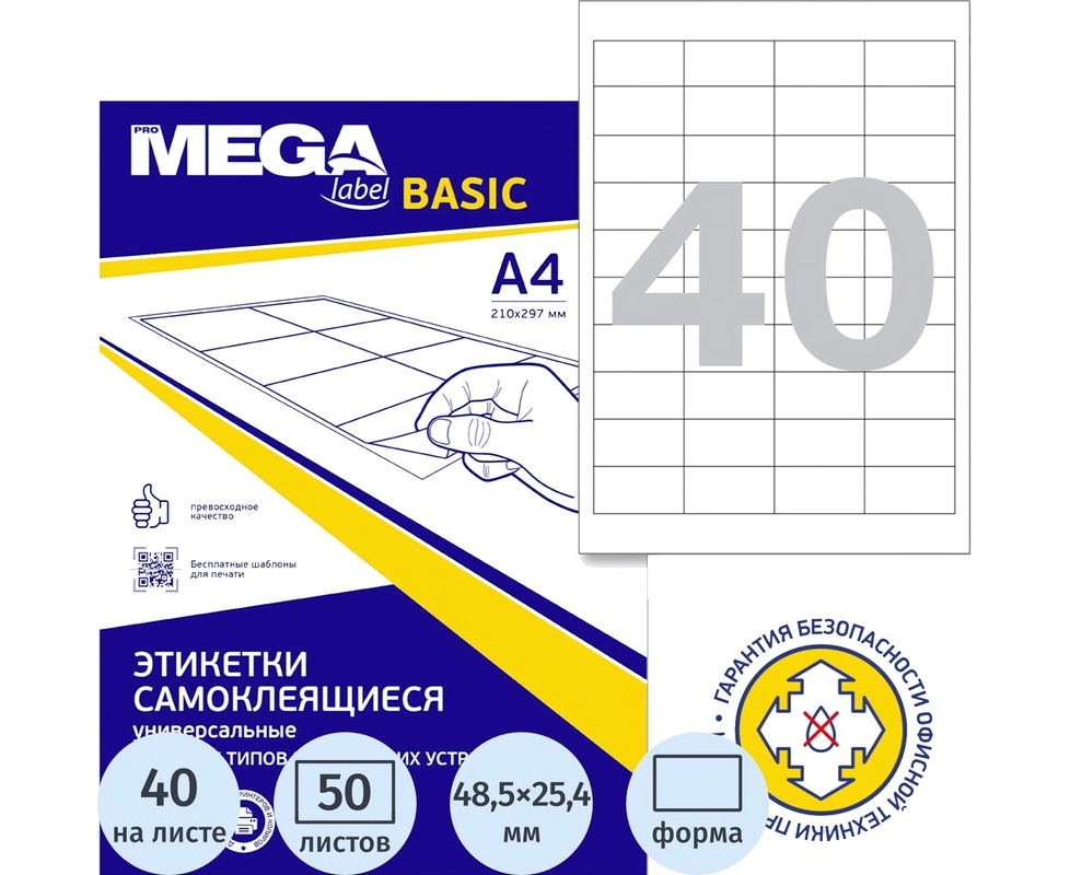 Этикетки самоклеящиеся Attache (ProMega Label Basic) 48.5х25.4 мм A4 40 штук на листе белые (50 листов в упаковке)1222150