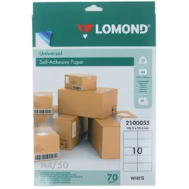 ТипЭтикетка самоклеящаяся Размер105*48 мм Плотность, г/м270 Количество листов в пачке50 Технология печатидля лазерной печати и струйной печати
