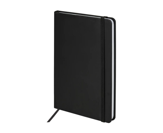 Блокнот А5 138x213 мм, BRAUBERG "Basic", под кожу, 80 л., клетка, черный, 116227