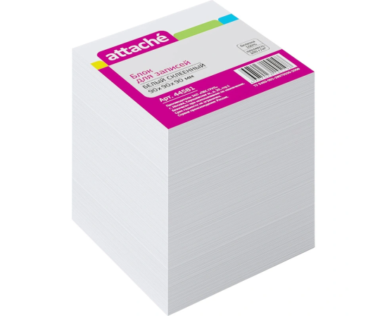 Блок для записей Attache 90x90x90 мм белый проклеенный (плотность 80 г/кв.м), 44581