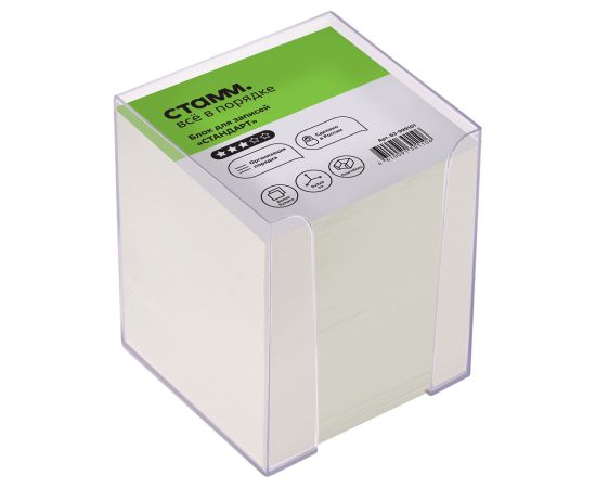 Блок для записей СТАММ, 8*8*8 см, пластиковый бокс, белый, белизна 65-70%, БЗ-888001, 331290