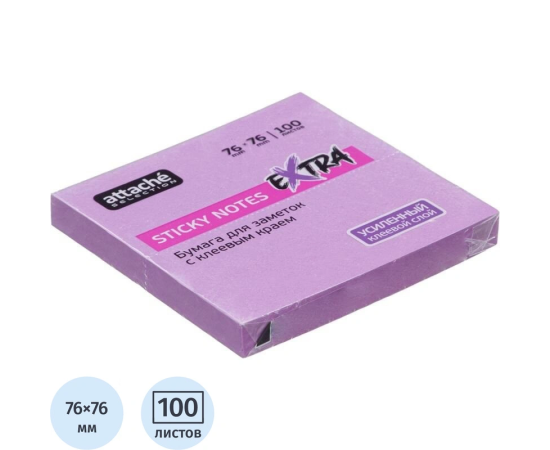 Стикеры Attache Selection Extra 76х76 мм неоновые фиолетовые (1 блок на 100 листов),1612913