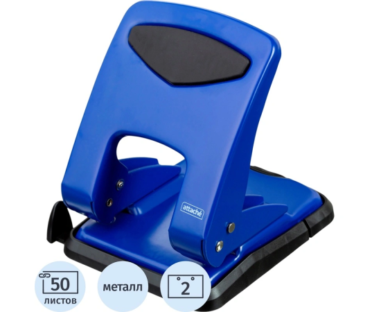 Дырокол Attache до 50 листов, с блокиратором, металлич., синий 1005054