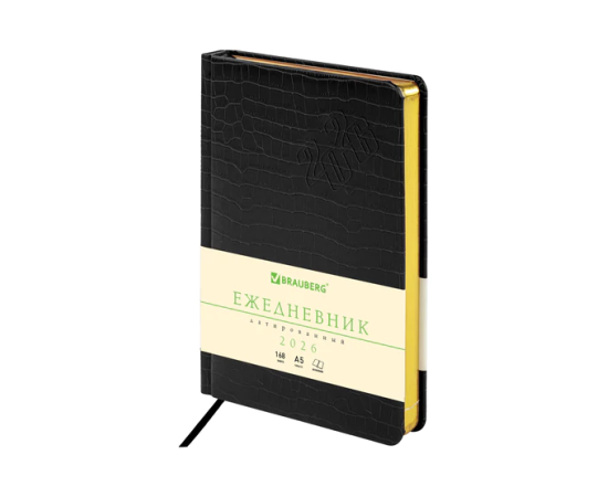 Ежедневник датированный 2026, А5, 138x213 мм, BRAUBERG "Comodo", под кожу, черный, 117049