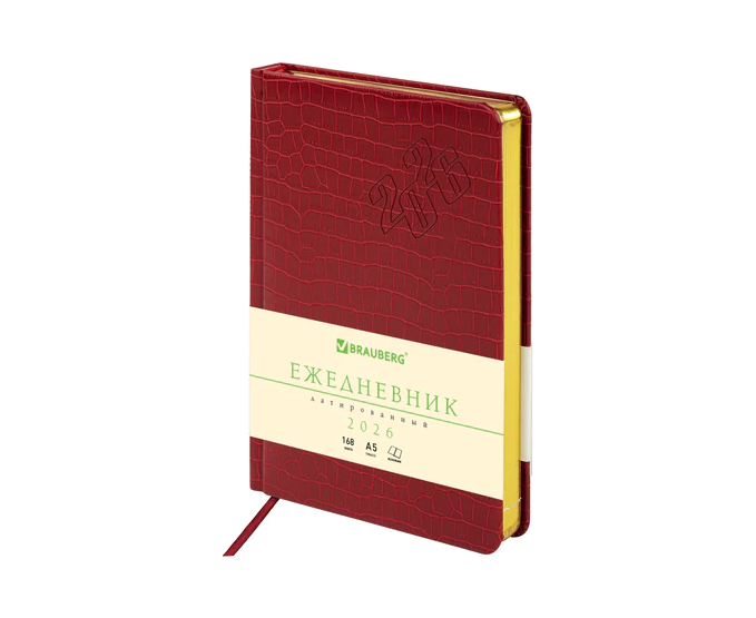 Ежедневник датированный 2026, А5, 138x213 мм, BRAUBERG "Comodo", под кожу, красный, 117048