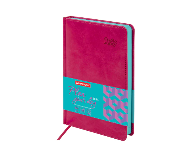 Ежедневник датированный 2026, А5, 138x213 мм, BRAUBERG "Rainbow", под кожу, розовый, 117078