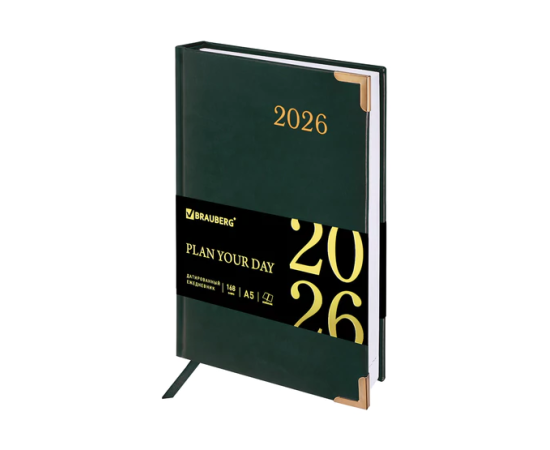 Ежедневник датированный 2026 А5 138x213мм BRAUBERG Senator, под кожу, зеленый, 117092