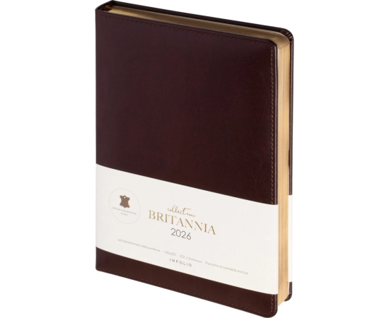Ежедневник датированный 2026 год InFolio Britannia натуральная кожа А5 176 листов бордовый (золотистый обрез), I1710/bordo, 2259291