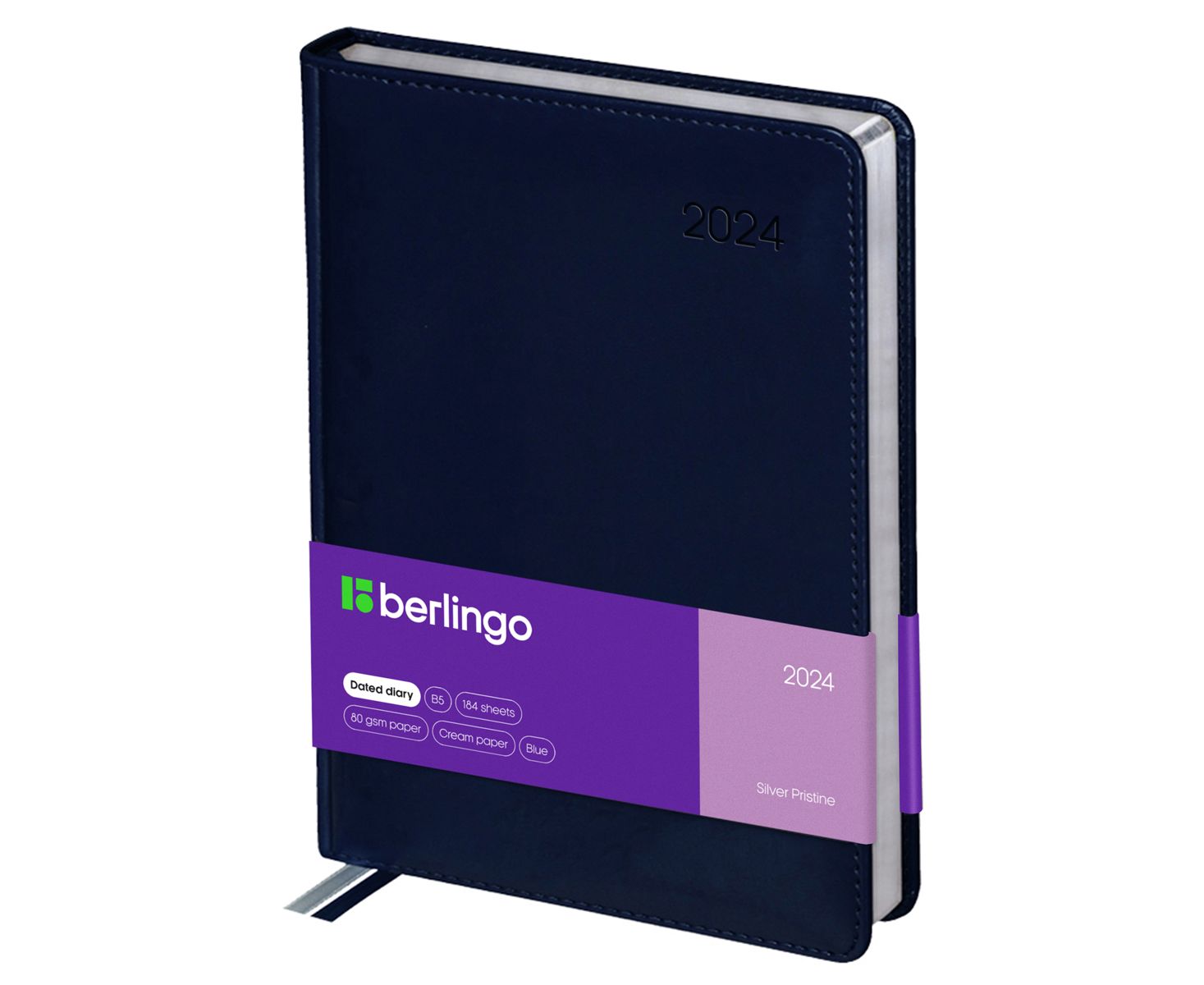 Ежедневник датированный 2024г., А4-(B5), 184л., кожзам, Berlingo "Silver Pristine", сер. срез, синий DD4_82402