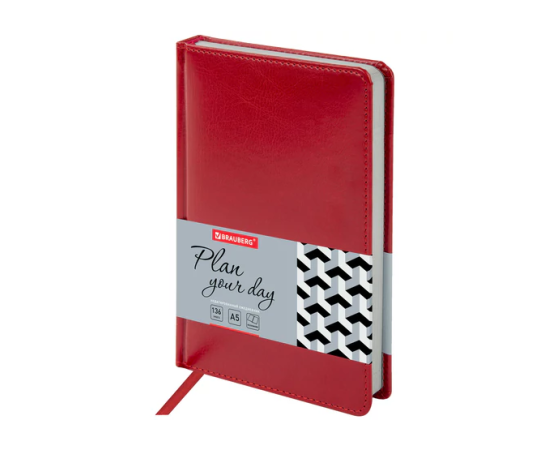 Ежедневник недатированный А5 138х213 мм BRAUBERG "Rainbow" под кожу, 136 л., красный, 111667