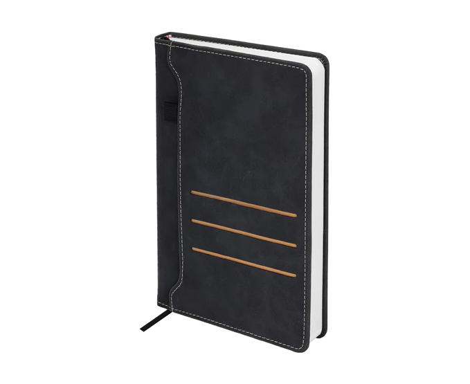 Ежедневник недатированный А5 138х213 мм, BRAUBERG "Slot", под кожу, держатель для ручки, 160 листов, черный, 116605