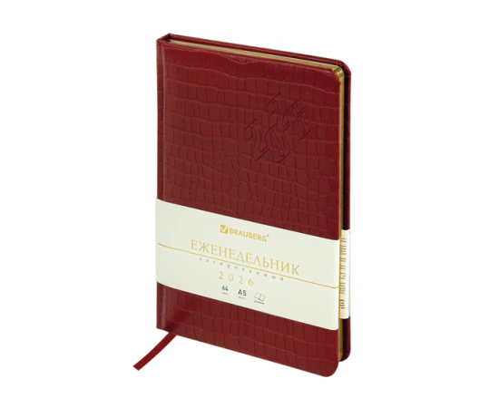 Еженедельник датированный 2026 А5 145х215 мм, BRAUBERG "Comodo", под кожу, красный, 117168