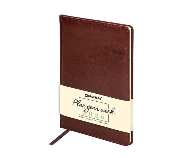 Еженедельник датированный 2026, БОЛЬШОЙ ФОРМАТ 210х297 мм, А4, BRAUBERG "Imperial", под кожу, коричневый, 117156