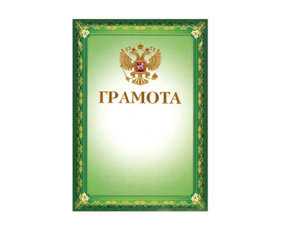 Грамота А4, мелованный картон, конгрев, тиснение фольгой, зеленая, BRAUBERG, 123061