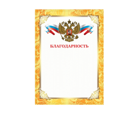 Грамота "Благодарность", А4, плотная мелованная бумага 200 г/м2, для лазерных принтеров, золотая, STAFF, 128899