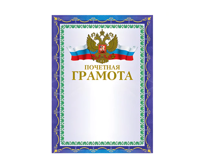 - Заголовок: "Почетная грамота"