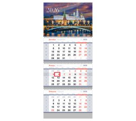 Тип календаря: квартальный на 3 гребнях Год: 2026 Тип скрепления: гребень Размер: 29,5х76 см Внутренний блок: мелованная бумага Плотность внутреннего блока: 80 г/м2 Подложка: мелованный картон Плотность подложки: 250 г/м2 Курсор: да Пикколо: да Дизайн: Госсимволика Календарная...