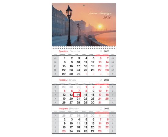 Календарь квартальный 1 бл. на 1 гр., 295*650 мм BG "Санкт-Петербург", с бегунком, 2026г.,380913