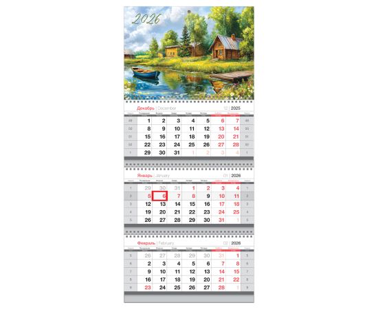 Календарь квартальный 3 бл. на 3 гр., 195*445 мм BG Mini "Деревня", с бегунком, 2026г.380959