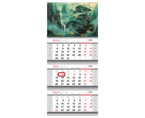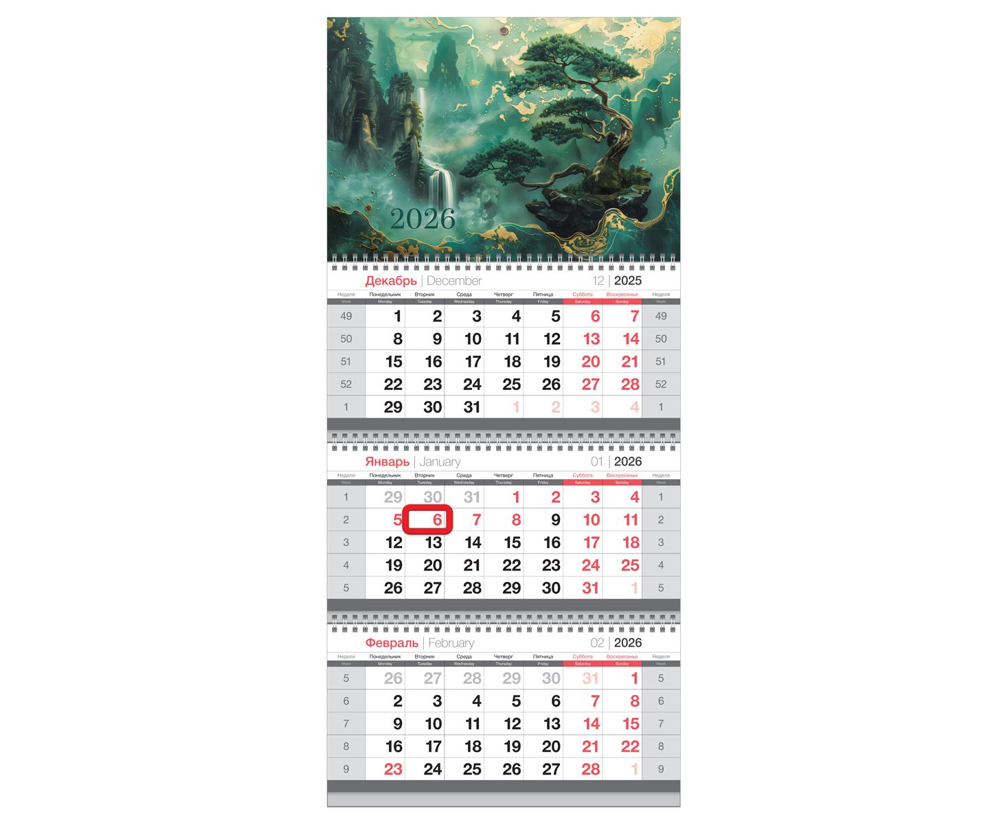 Календарь квартальный 3 бл. на 3 гр., 295*660 мм BG "Бонсай", с магнитным бегунком, 2026г, фольга, 380936