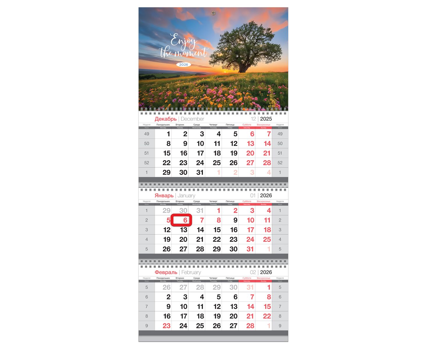 Календарь квартальный 3 бл. на 3 гр., 295*660 мм BG "Цветущий закат", с магнитным бегунком, 2026г.380956
