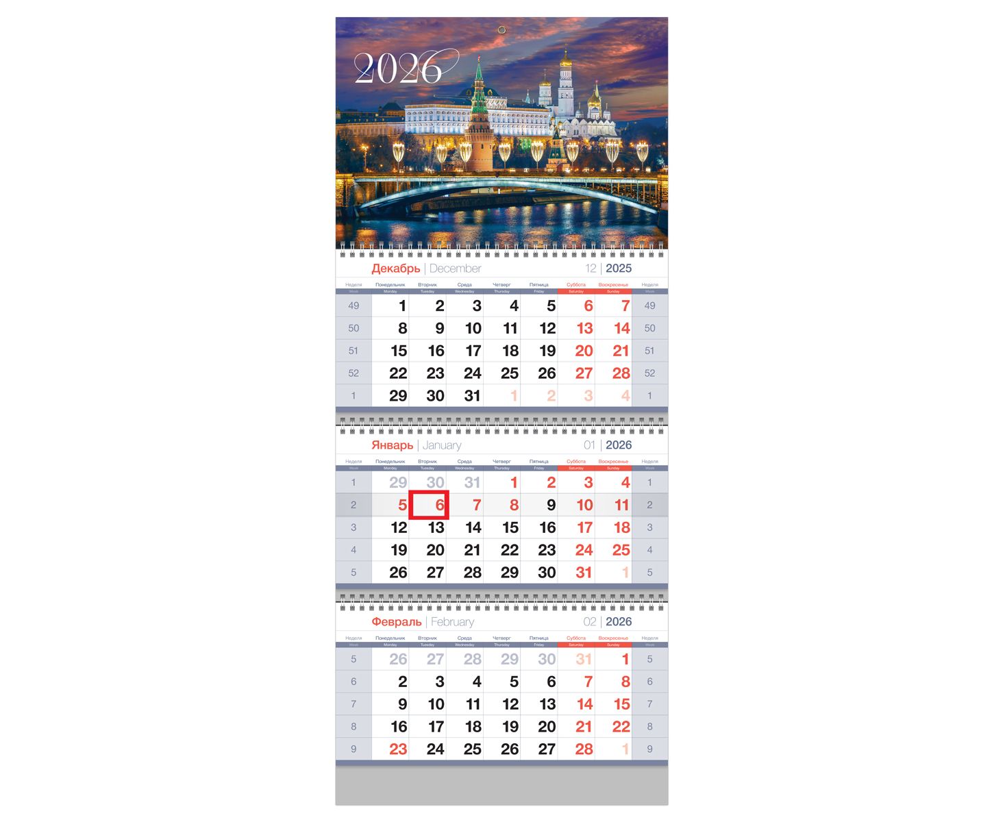 Календарь квартальный 3 бл. на 3 гр., 295*700 мм BG Standard "Москва", с бегунком, 2026г.,380977