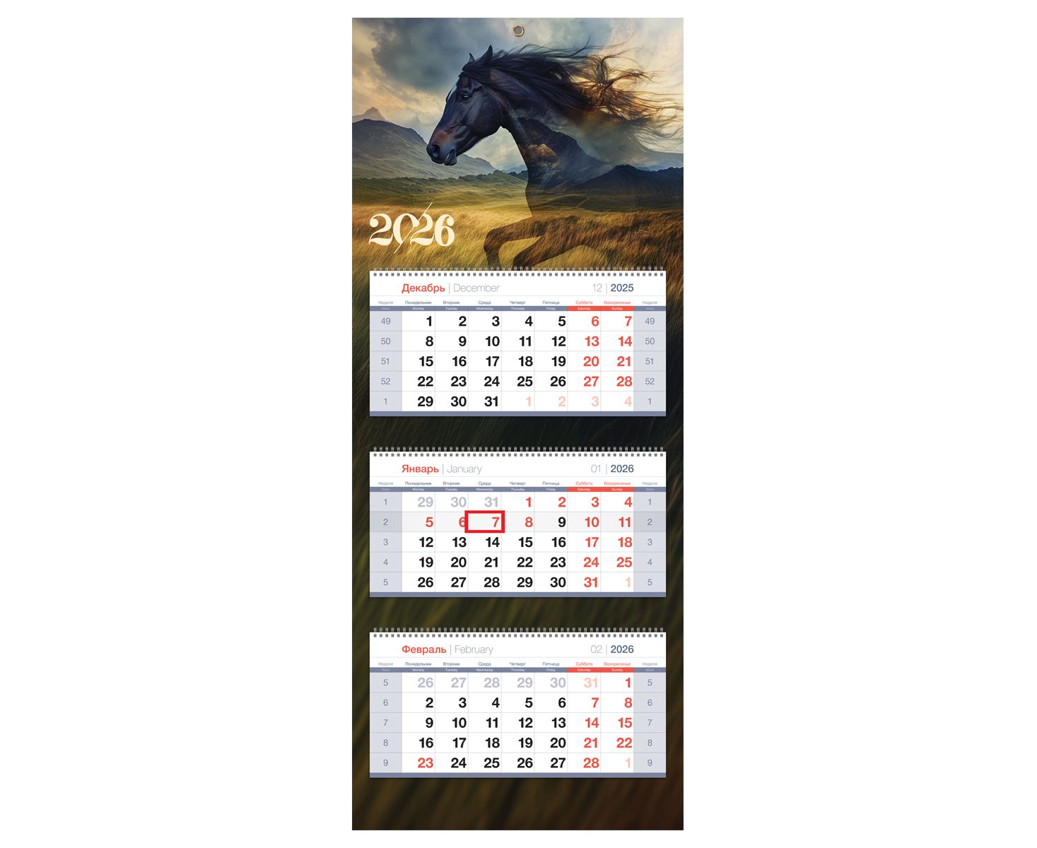 Календарь квартальный 3 бл. на 3 гр., 330*810 мм BG Premium "Свободный дух", с бег, 2026г,380970