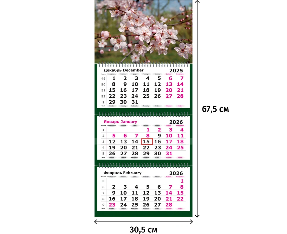 - Тип календаря: квартальный на 3 гребнях
