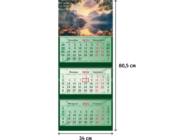 - Тип календаря: квартальный на 3 гребнях