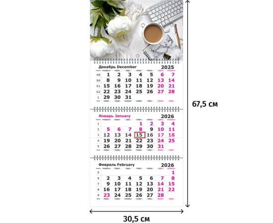 Календарь настенный 3-х блочный 2026 Офис 30.5x67.5 см 2293577