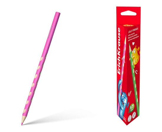 Цветные карандаши деревянные эргономичные ErichKrause Jolly Friends трехгранные, грифель 3 мм, 12 цветов (в коробке 12 шт), 63600