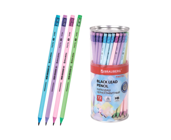 Карандаш чернографитный BRAUBERG "PASTEL", 1 шт., HB, трехгранный, с ластиком, 181995