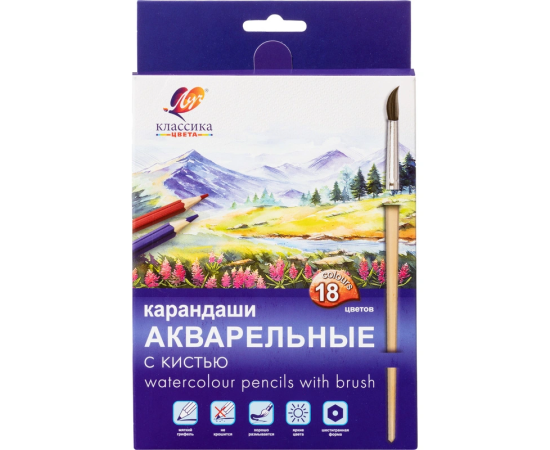 Карандаши акварельные Луч Классика цвета шестигранные 18 цветов с кистью в наборе,2275982