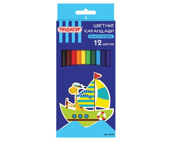 Карандаши цветные ПИФАГОР "Жираф", 12 цветов, пластиковые, классические заточенные, 181250