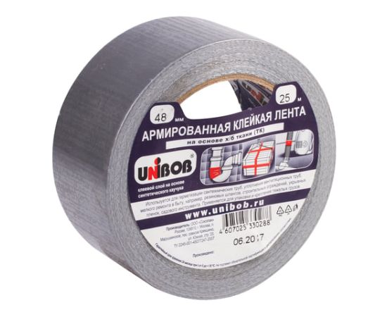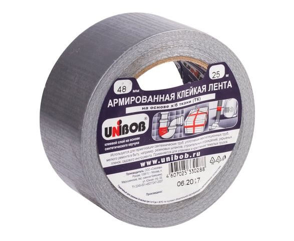 Клейкая лента армированная 48 мм х 25 м, тканевая основа, прочная, европодвес, UNIBOB, 29836, 600855