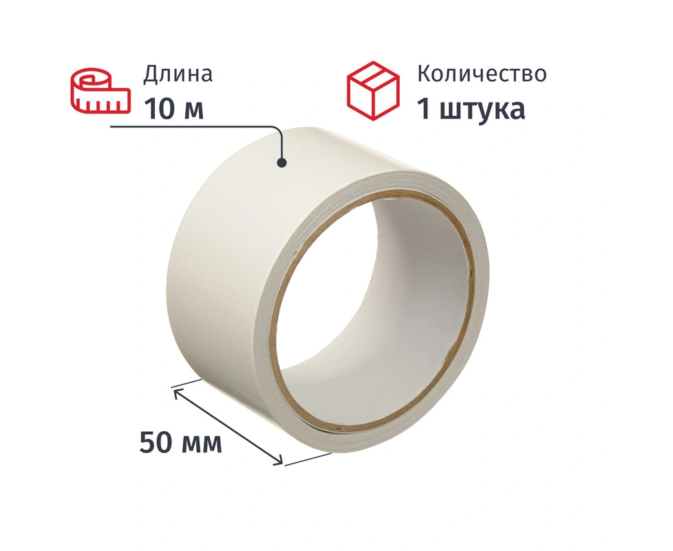 Клейкая лента двухсторонняя монтажная прозрачная на бумажной основе 50 мм x 10 м, 2397313