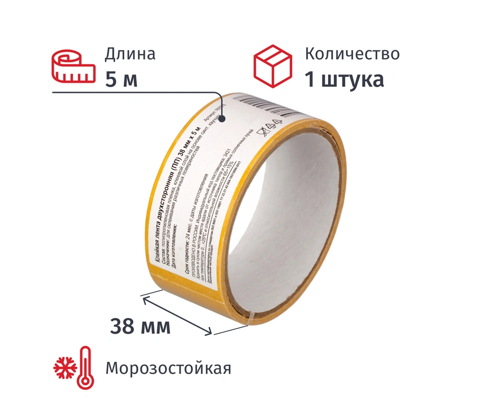 Клейкая лента двусторонняя монтажная белая 38 мм х 5 м, 767975