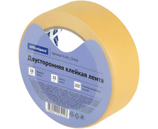 Клейкая лента двусторонняя OfficeSpace, 38мм*25м, полипропилен, KLDc_55410, 362216