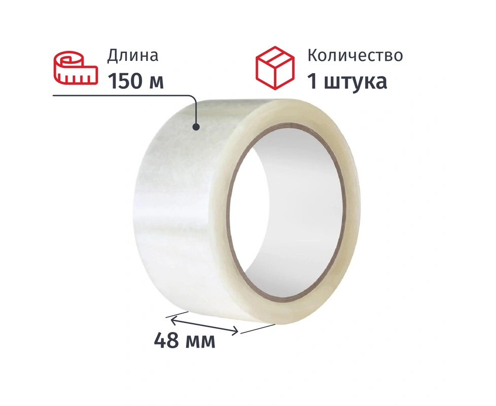 Клейкая лента упаковочная 48ммх150мх38мкм, прозрачная 519028