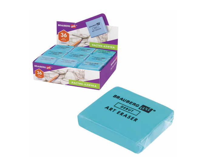 Ластик-клячка художественный BRAUBERG ART "DEBUT", 40х36х10 мм, мягкий, голубой, 229583