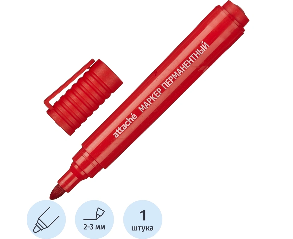 4261340486 МАРКЕР ПЕРМАНЕНТНЫЙ С КРУГЛЫМ НАКОНЕЧНИКОМ ATTACHE 475788 3 КРАСНЫЙ