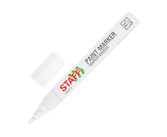 Маркер-краска лаковый (paint marker) 2-4 мм, БЕЛЫЙ, НИТРО-ОСНОВА, STAFF PROFIT, для любых поверхностей, 152577
