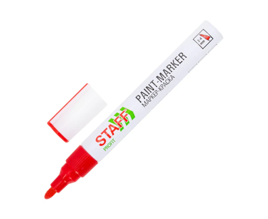 Маркер-краска лаковый (paint marker) 2-4 мм, КРАСНЫЙ, НИТРО-ОСНОВА, STAFF PROFIT, для любых поверхностей, 152582