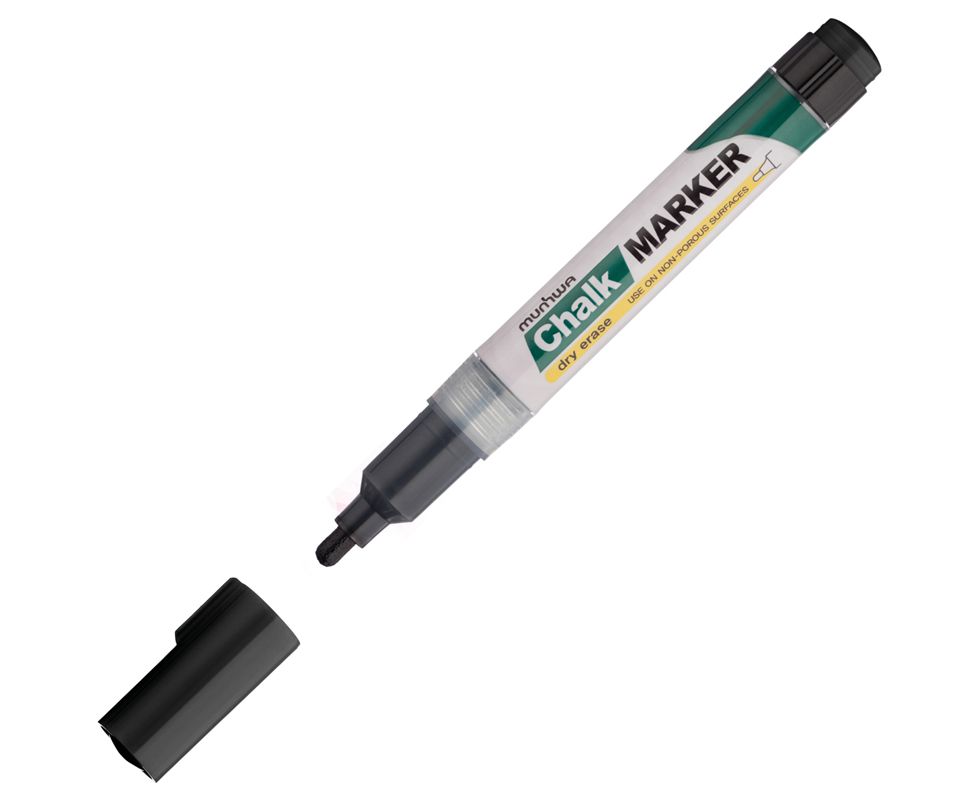 Маркер меловой MUNHWA «Chalk Marker», 3 мм, ЧЕРНЫЙ, сухостираемый, для гладких поверхностей, CM-01, 151487