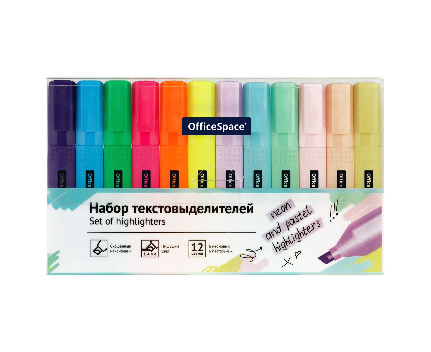 Набор текстовыделителей OfficeSpace 12цв., 6цв. пастельные, 6цв. неоновые, 1-4мм, ПВХ-бокс,HL12_5499, 360746