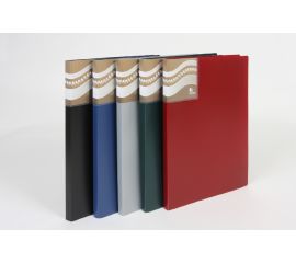 Количество карманов: 80 шт Формат: А4 Ширина корешка: 35 мм Антибликовая фактура: да Цвет: черный На корешке папки: наклейка Серия: Office Фактура: песок Толщина пластика: 0.8 мм Материал: пластик