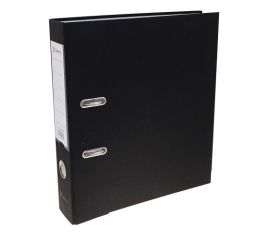 Ширина корешка - 80 мм;  Формат - А4;  Карман - на корешке папки: да;  Цвет - черный;   Наличие уголка - металлический;  Материал внутренней обложки папки - картон;  Материал обложки - ПВХ;  Наличие кармана на внутренней обложке - нет.