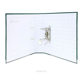 Ширина корешка - 80 мм;  Формат - А4;  Карман - на корешке папки: да;  Цвет - зеленый;   Наличие уголка - металлический;  Материал внутренней обложки папки - картон;  Материал обложки - ПВХ;  Наличие кармана на внутренней обложке - нет.