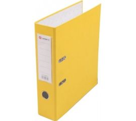 Ширина корешка - 80 мм;  Формат - А4;  Карман - на корешке папки: да;  Цвет - желтый;   Наличие уголка - металлический;  Материал внутренней обложки папки - картон;  Материал обложки - ПВХ;  Наличие кармана на внутренней обложке - нет.
